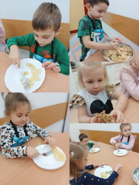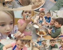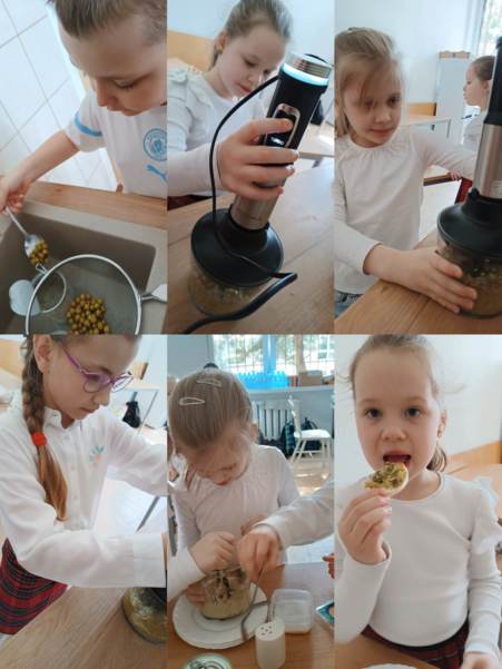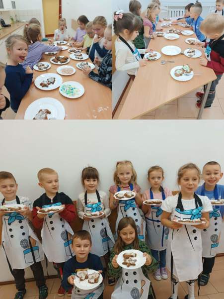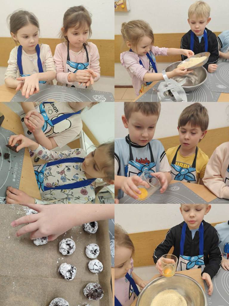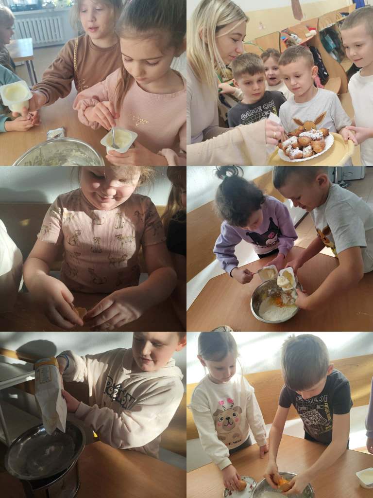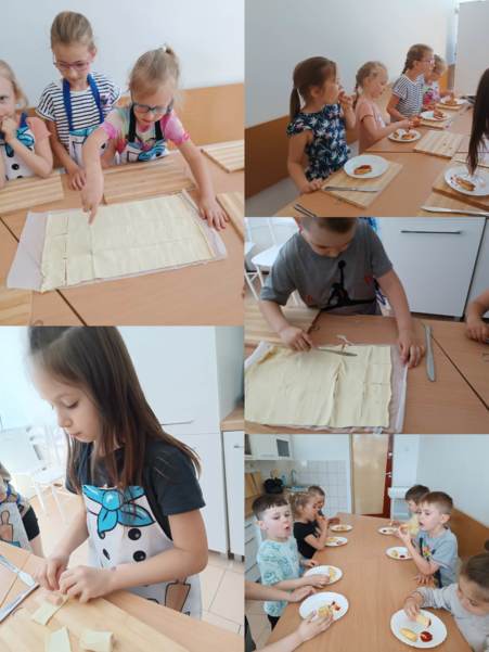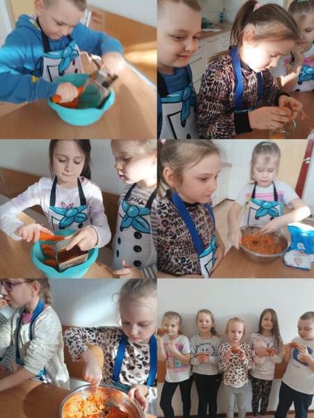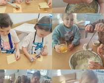 Na zajęciach kulinarnych w roku szkolnym 2024/2025 robiliśmy: wafelki, koktajl owocowy, koktajl marchewkowo- buraczkowy, kluski leniwe z owocami, gofry, rogaliki, pierniki, hot-dogi, kulki mocy, warzywny pociąg, owocowe zwierzaki, ciasteczka maślane, faworki, sałatkę owocowa, tosty, zapiekanki, babeczki z jabłkiem oraz lemoniadę. Celem zajęć jest nadal kształtowanie zdrowych nawyków żywieniowych. Dzieci oprócz czerpania radości ze wspólnego przygotowywania posiłków, poznania zasad bezpieczeństwa, rozwijały poczucie własnej wartości, kształtowały poczucie sprastwa. Dzieci poprzez degustację owoców i warzyw kontaktowały swoje zmysły oraz kulturalne zachowanie się przy stole.