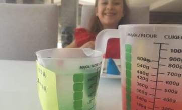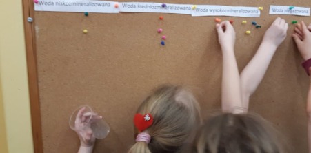 Dzieci wycieły kropelki wody, na które, po wypiciu wody, naklejały nakrętki. Ten sposób zachęcił WSZYSTKIE dzieci do picia wody. Nauczyły się one także monitorować ilość wypitej w ciągu tygodnia wody.