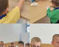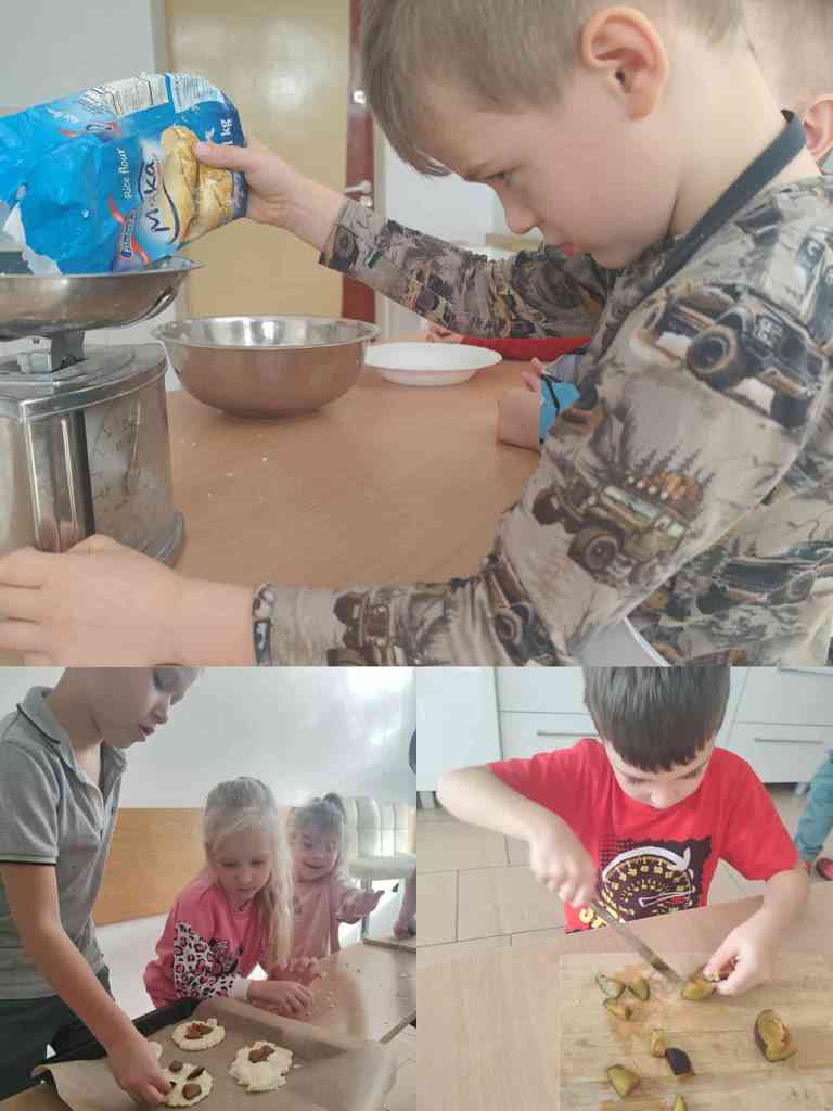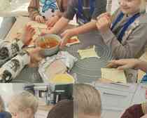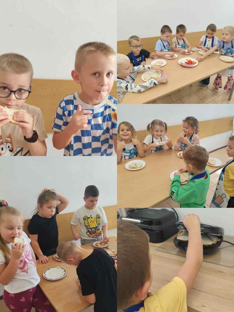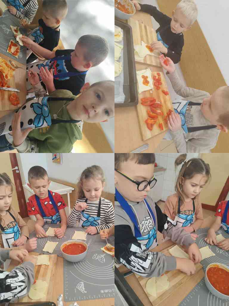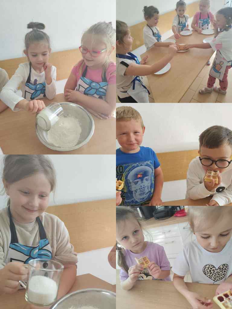 Na zajęciach kulinarnych w roku szkolnym 2024/2025 robiliśmy: wafelki, koktajl owocowy, koktajl marchewkowo- buraczkowy, kluski leniwe z owocami, gofry, rogaliki, pierniki, hot-dogi, kulki mocy, warzywny pociąg, owocowe zwierzaki, ciasteczka maślane, faworki, sałatkę owocowa, tosty, zapiekanki, babeczki z jabłkiem oraz lemoniadę. Celem zajęć jest nadal kształtowanie zdrowych nawyków żywieniowych. Dzieci oprócz czerpania radości ze wspólnego przygotowywania posiłków, poznania zasad bezpieczeństwa, rozwijały poczucie własnej wartości, kształtowały poczucie sprastwa. Dzieci poprzez degustację owoców i warzyw kontaktowały swoje zmysły oraz kulturalne zachowanie się przy stole.