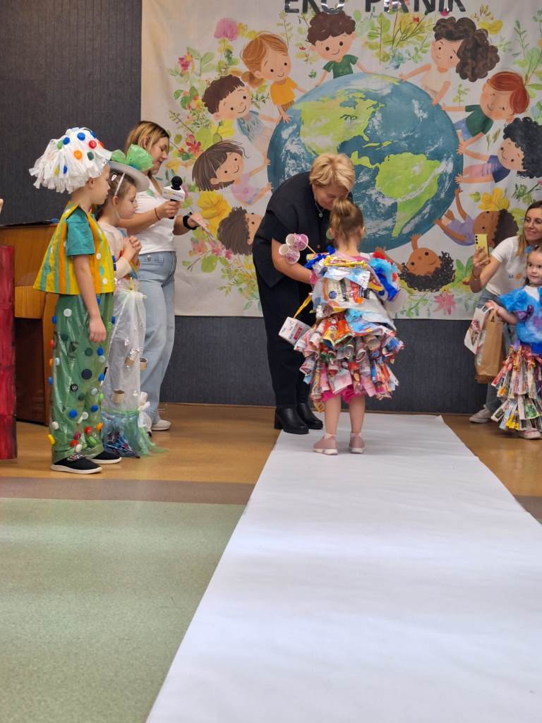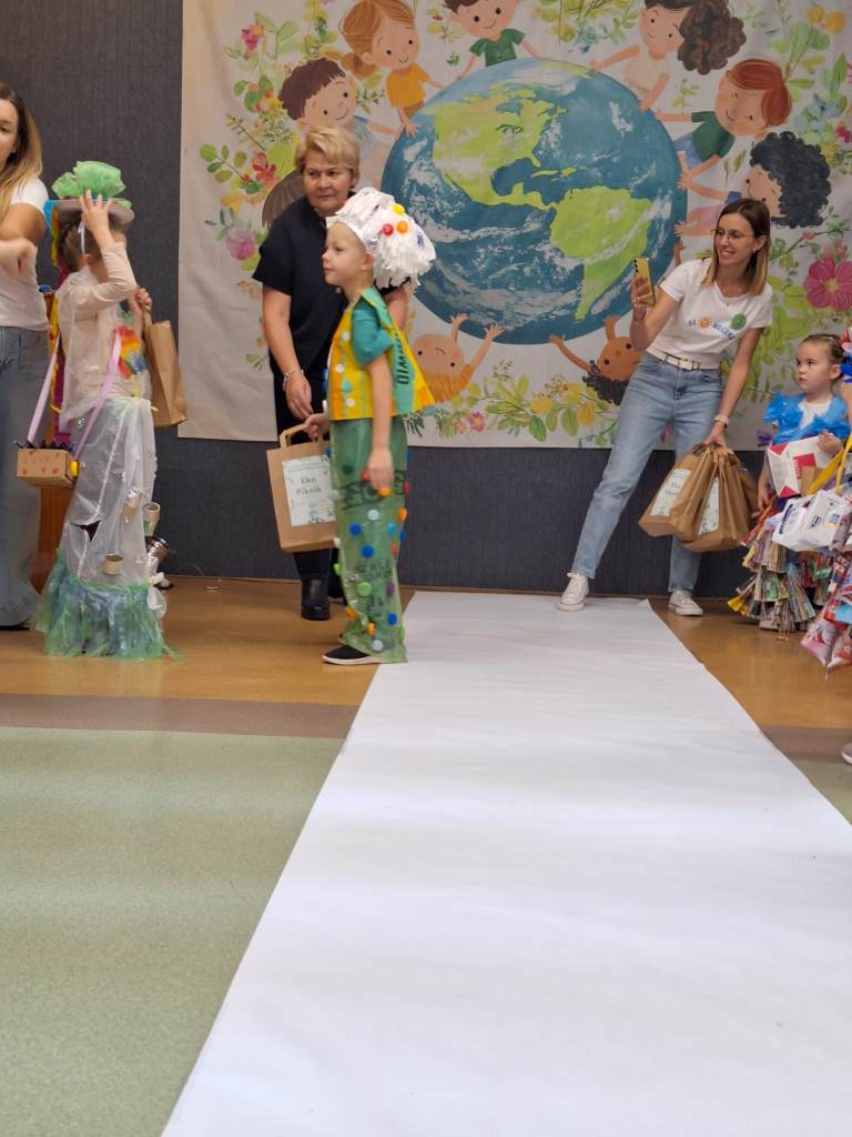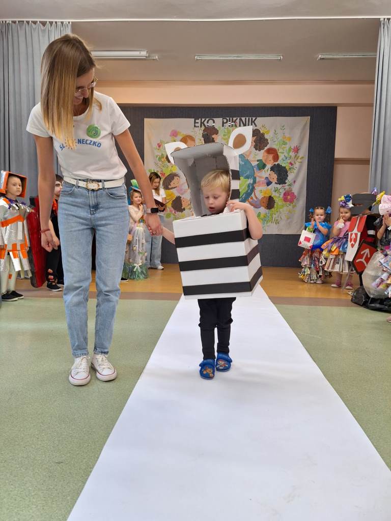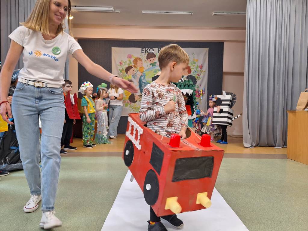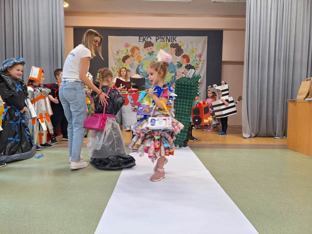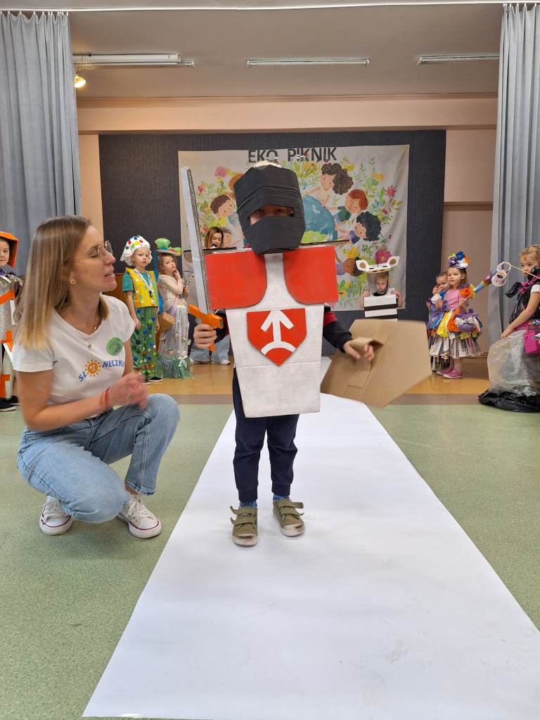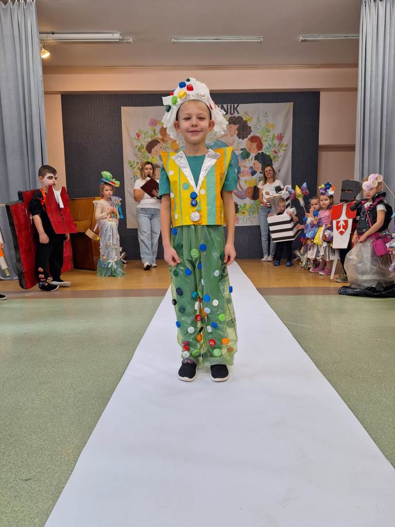 Eko Piknik okazał się wydarzeniem pełnym radości i kreatywności, a największą atrakcją okazał się ekologiczny pokaz mody. Dzieci zaprezentowały stroje wykonane wspólnie z rodzicami z materiałów przezznaczonych do recyklingu - papieru, folii, tektury czy butelek plastikowych, a maili modele z dumą prezentowali swoje kreacje na specjalnie przygotowanym "ekologicznym wybiegu". Gośćmi specjalnymi eko pokazu byli uczniowe klas pierwszych Szkoły Podstawowej w Kotlinie. Wspólna zabawa wzmocniła współracę ze szkołą podstawową i zaangażowanie całej spłeczności przedszkolnej.