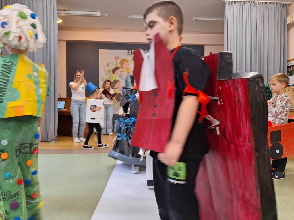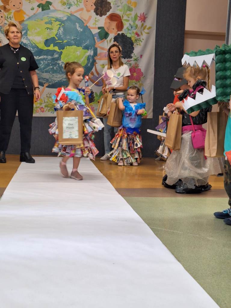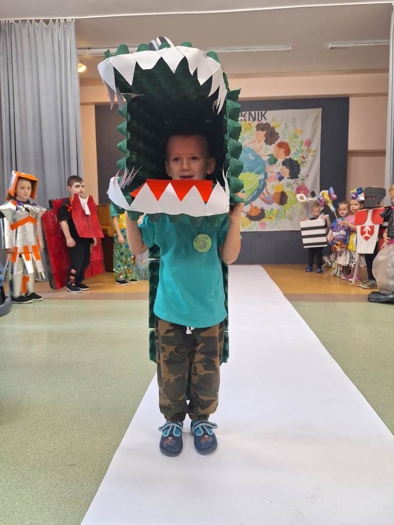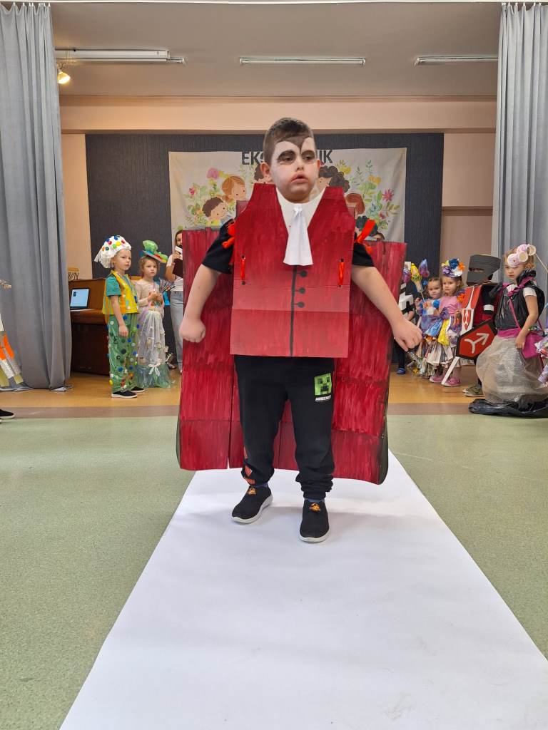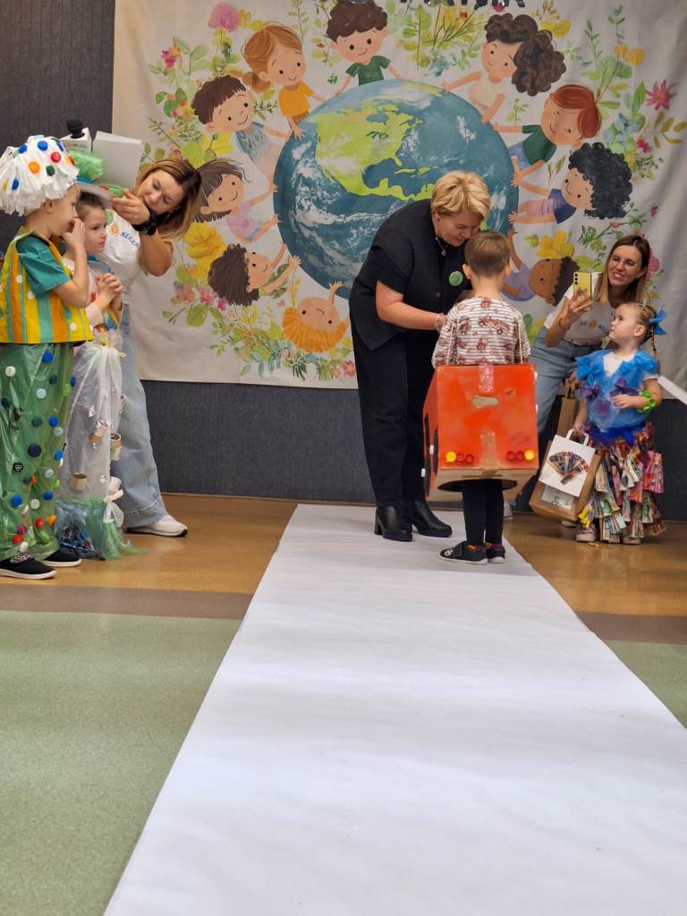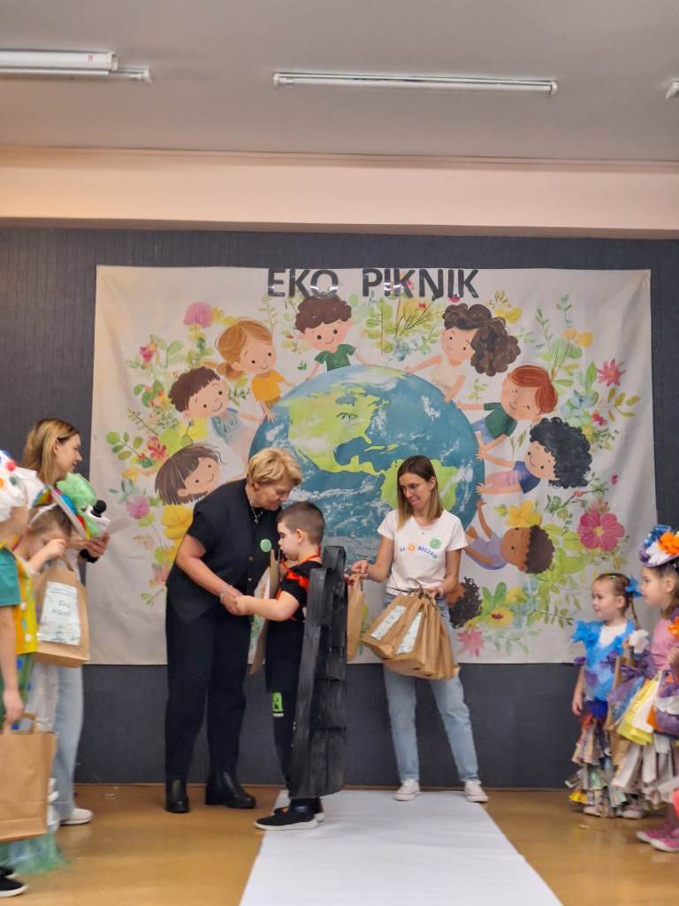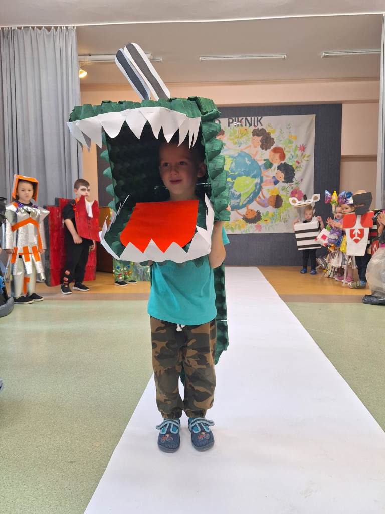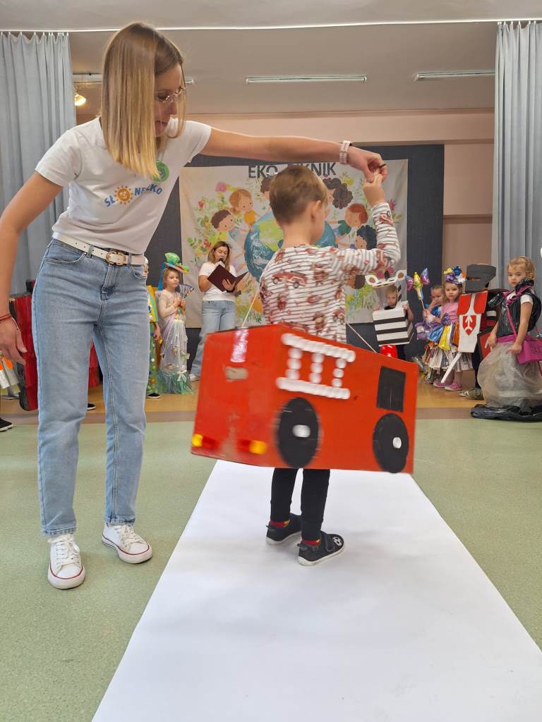 Eko Piknik okazał się wydarzeniem pełnym radości i kreatywności, a największą atrakcją okazał się ekologiczny pokaz mody. Dzieci zaprezentowały stroje wykonane wspólnie z rodzicami z materiałów przezznaczonych do recyklingu - papieru, folii, tektury czy butelek plastikowych, a maili modele z dumą prezentowali swoje kreacje na specjalnie przygotowanym "ekologicznym wybiegu". Gośćmi specjalnymi eko pokazu byli uczniowe klas pierwszych Szkoły Podstawowej w Kotlinie. Wspólna zabawa wzmocniła współracę ze szkołą podstawową i zaangażowanie całej spłeczności przedszkolnej.