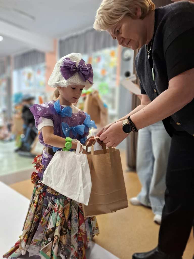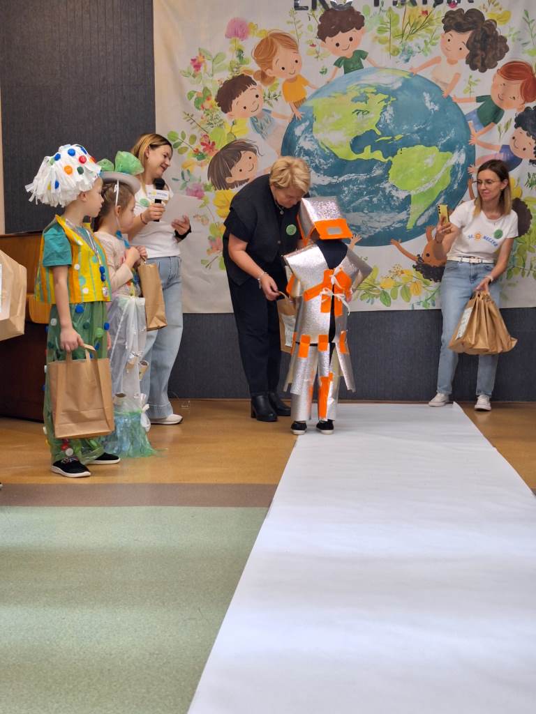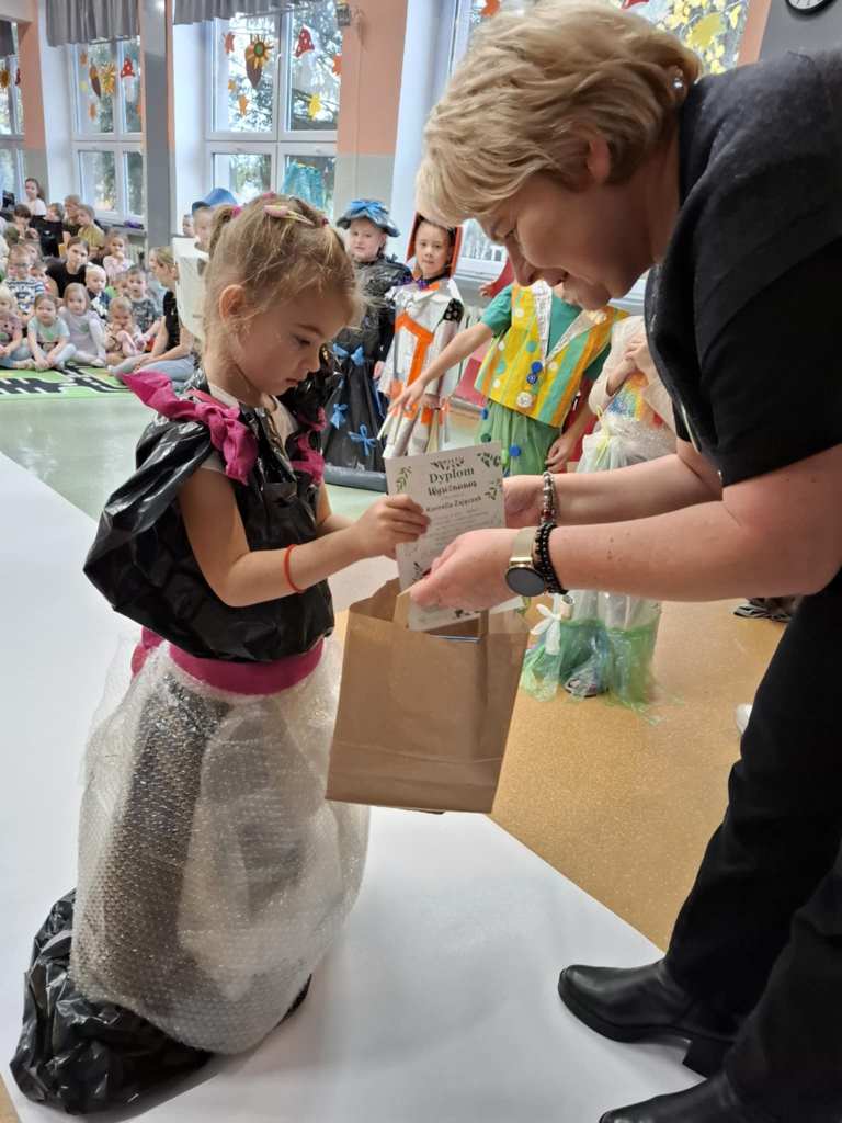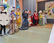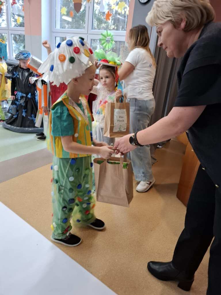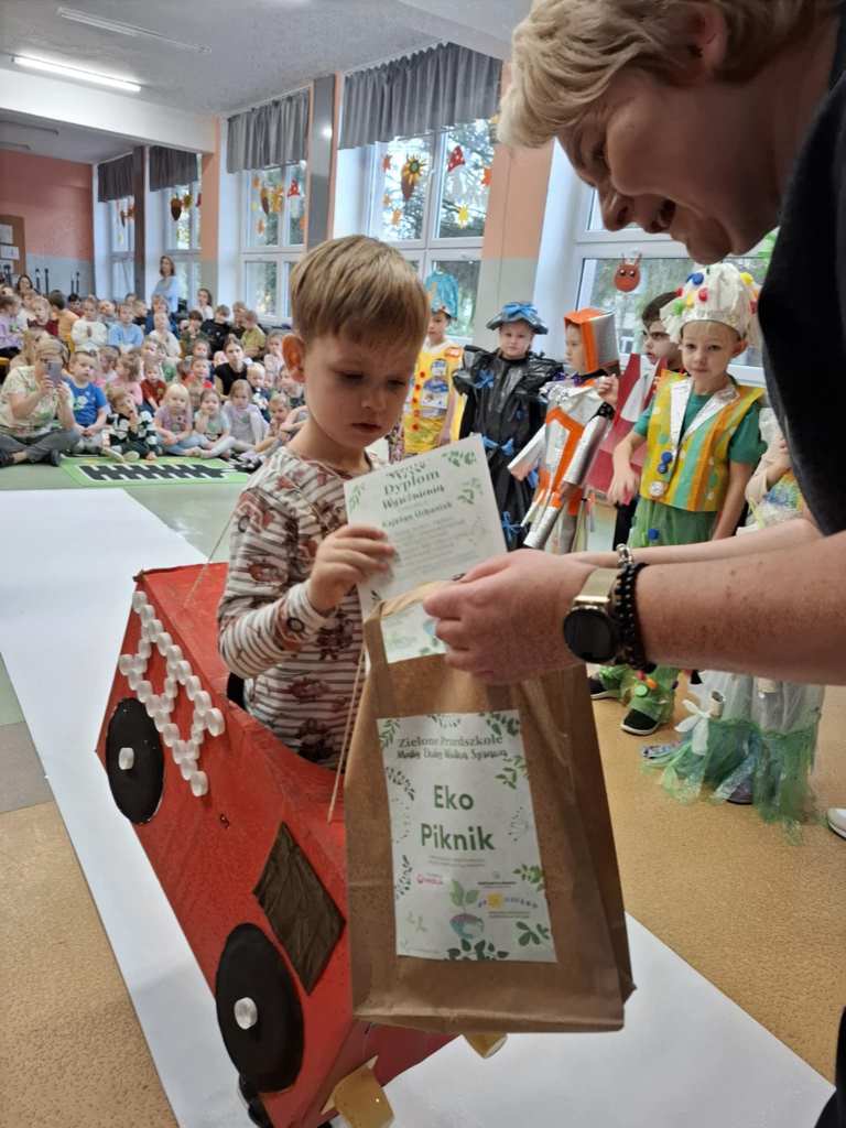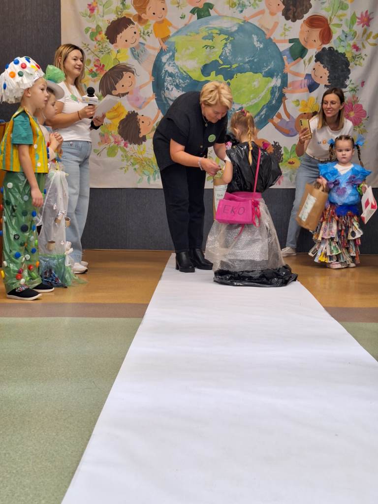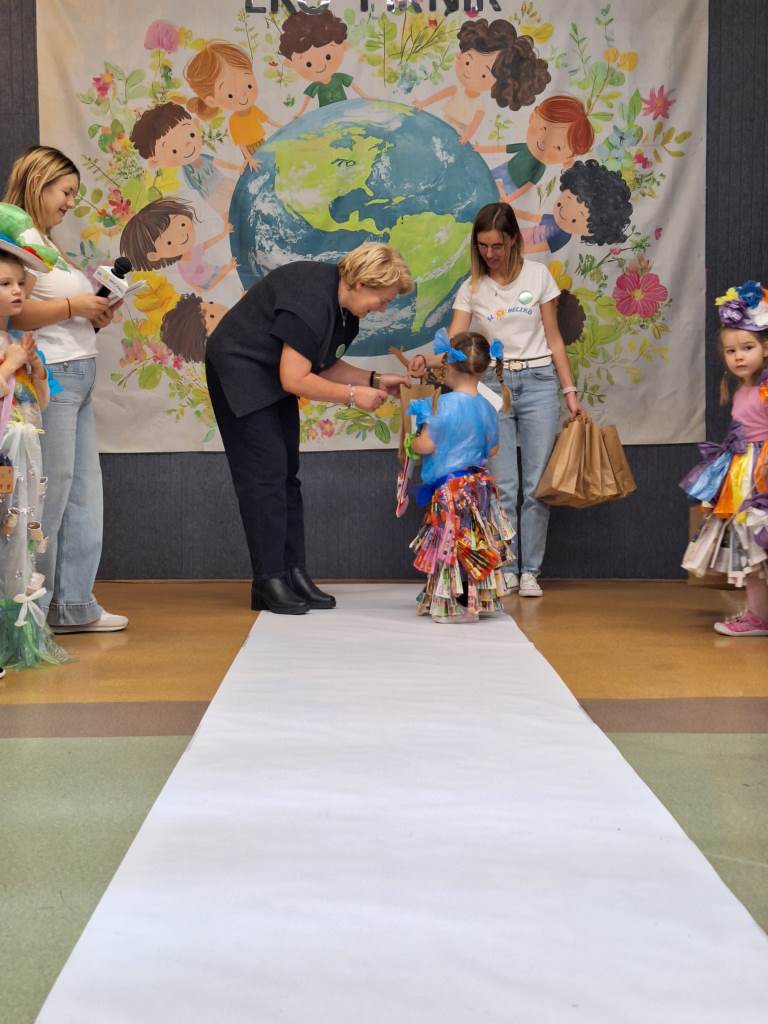 Eko Piknik okazał się wydarzeniem pełnym radości i kreatywności, a największą atrakcją okazał się ekologiczny pokaz mody. Dzieci zaprezentowały stroje wykonane wspólnie z rodzicami z materiałów przezznaczonych do recyklingu - papieru, folii, tektury czy butelek plastikowych, a maili modele z dumą prezentowali swoje kreacje na specjalnie przygotowanym "ekologicznym wybiegu". Gośćmi specjalnymi eko pokazu byli uczniowe klas pierwszych Szkoły Podstawowej w Kotlinie. Wspólna zabawa wzmocniła współracę ze szkołą podstawową i zaangażowanie całej spłeczności przedszkolnej.