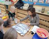 Podczas zajęć dzieci mogły, również uczestniczyć w procesie wykonania papieru z recyklingu.