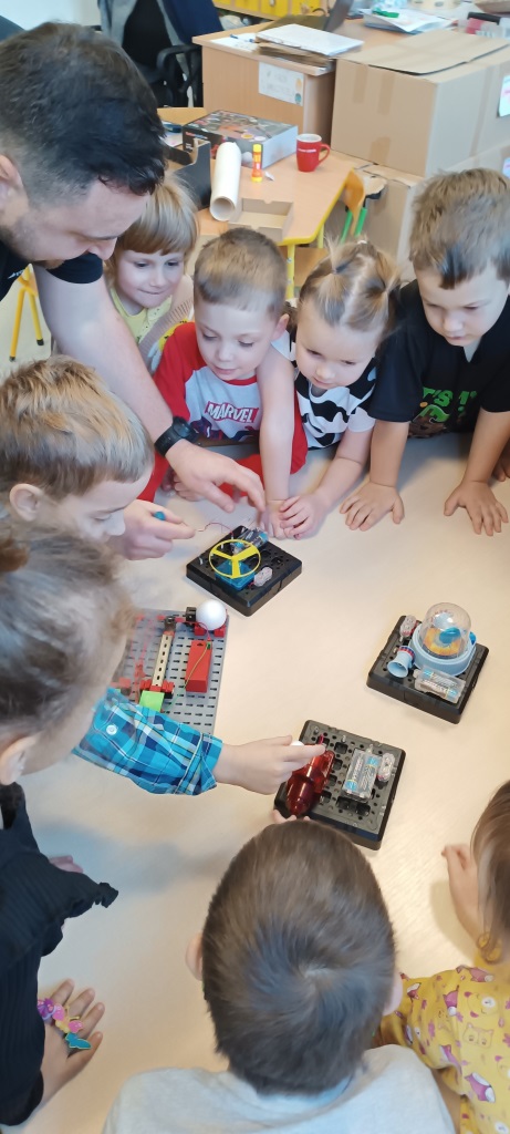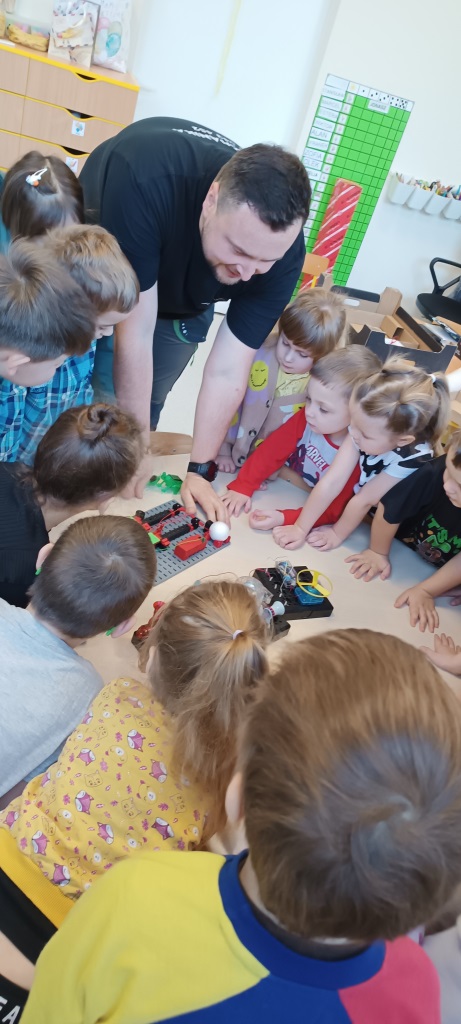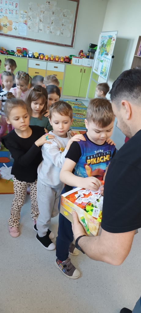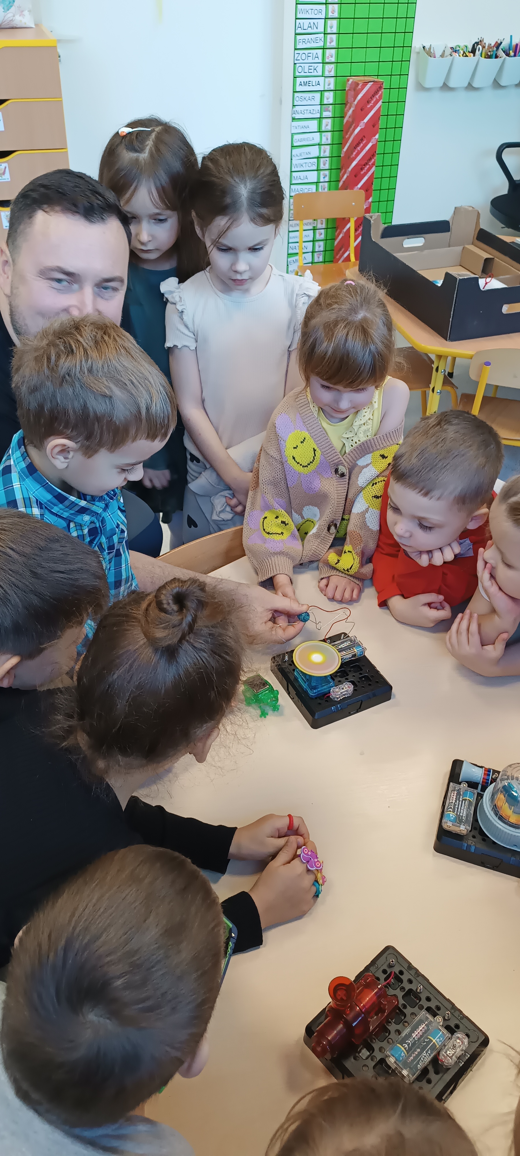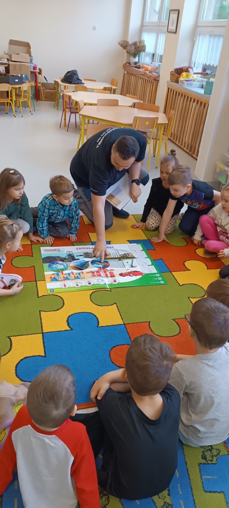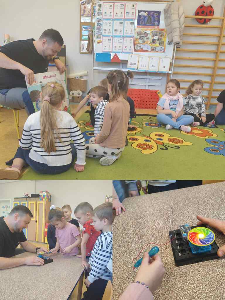 W naszym przedszkolu odbyło się spotkanie z panem eklektrykiem, którego celem było promowanie oszczędzania energii oraz uświadomienie dzieciom, skąd się bierze prąd. Pan eletryk w ciekawy sposób opowiedział dzieciom, jak działa prąd oraz do czego potrzebny jest w życiu codziewnnym. Przedszkolaki dowiedziały się, że energia pochodzi m. in. z elektrowni wiatrowych, wodnych i słonecznych. Wytłumaczył jak bezpiczenie korzystać z urządzeń elektrycznych i jak ważne jest oszczędzanie energii. Spotkanie było bardzo pouczające, a dzieci zdobyły nowe wiadomości i umiejętności, które pomogą im bezpiecznie i oszczędnie korzystać z energii eletrycznej. Jenak najwięcej radości sprawiły dzieciom otrzymane latarki.